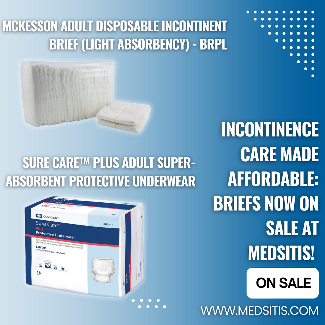 🕒 Don’t wait—our sale won't last forever! Visit medsitis.com today to get high-quality incontinence care at unbeatable prices.