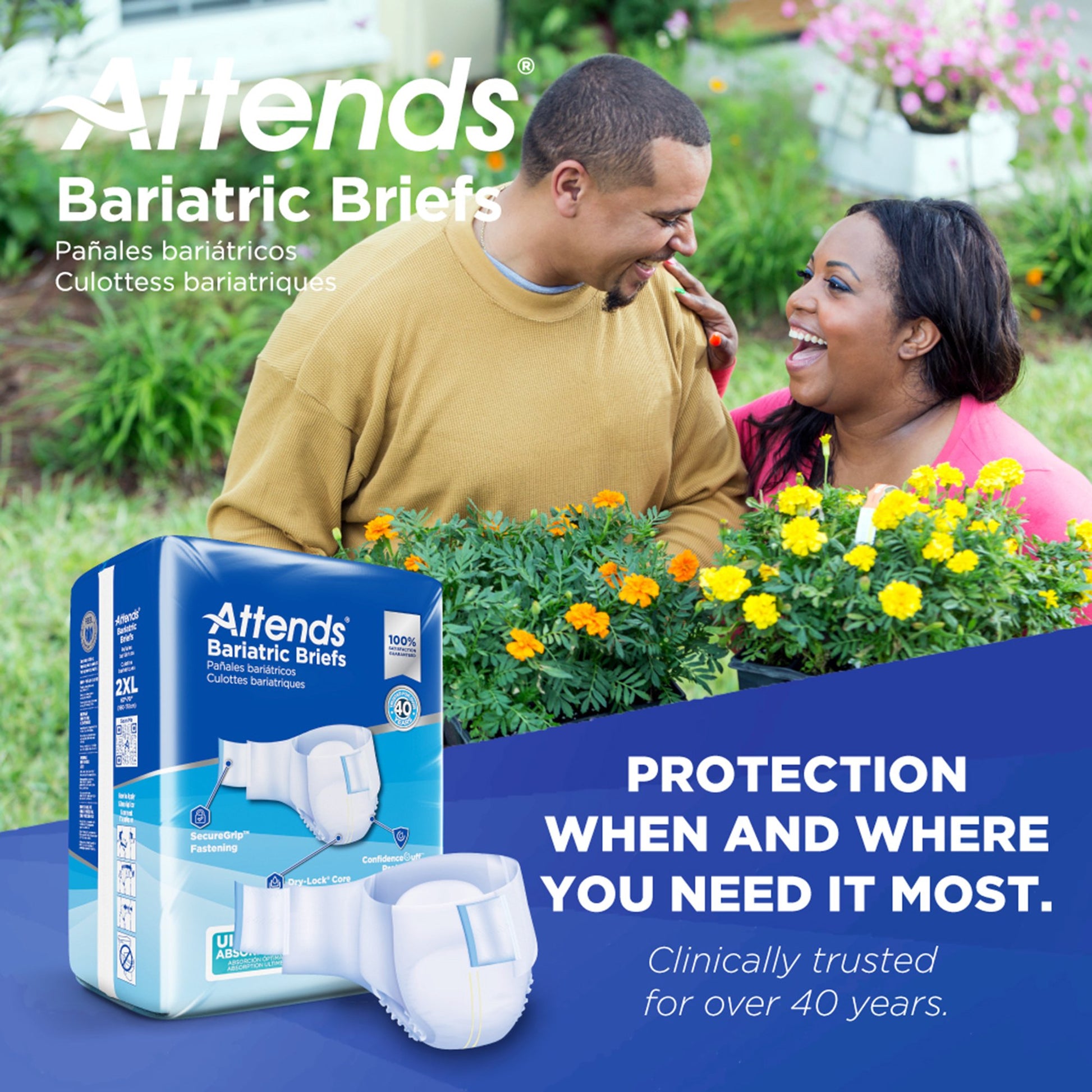 - SecureGrip fastening provides a reliable and snug fit with an expanded fastening area, improving grip and easy application of the brief