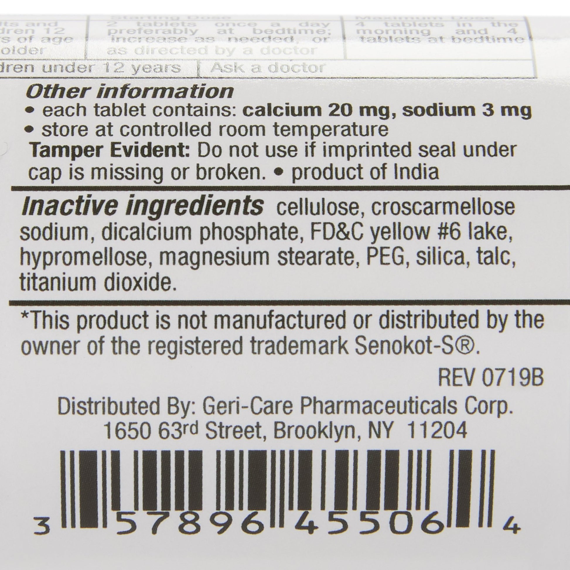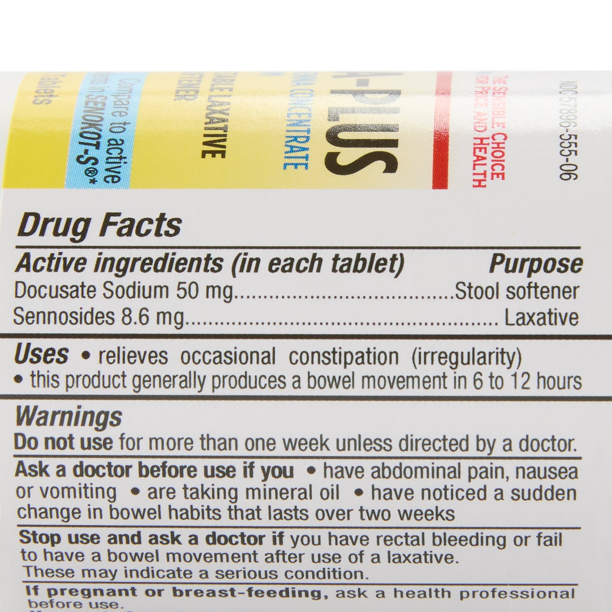 - Compare to the active ingredients in Senokot®-S tablets – Senokot-S is a registered trademark of Arcadia Consumer Healthcare.