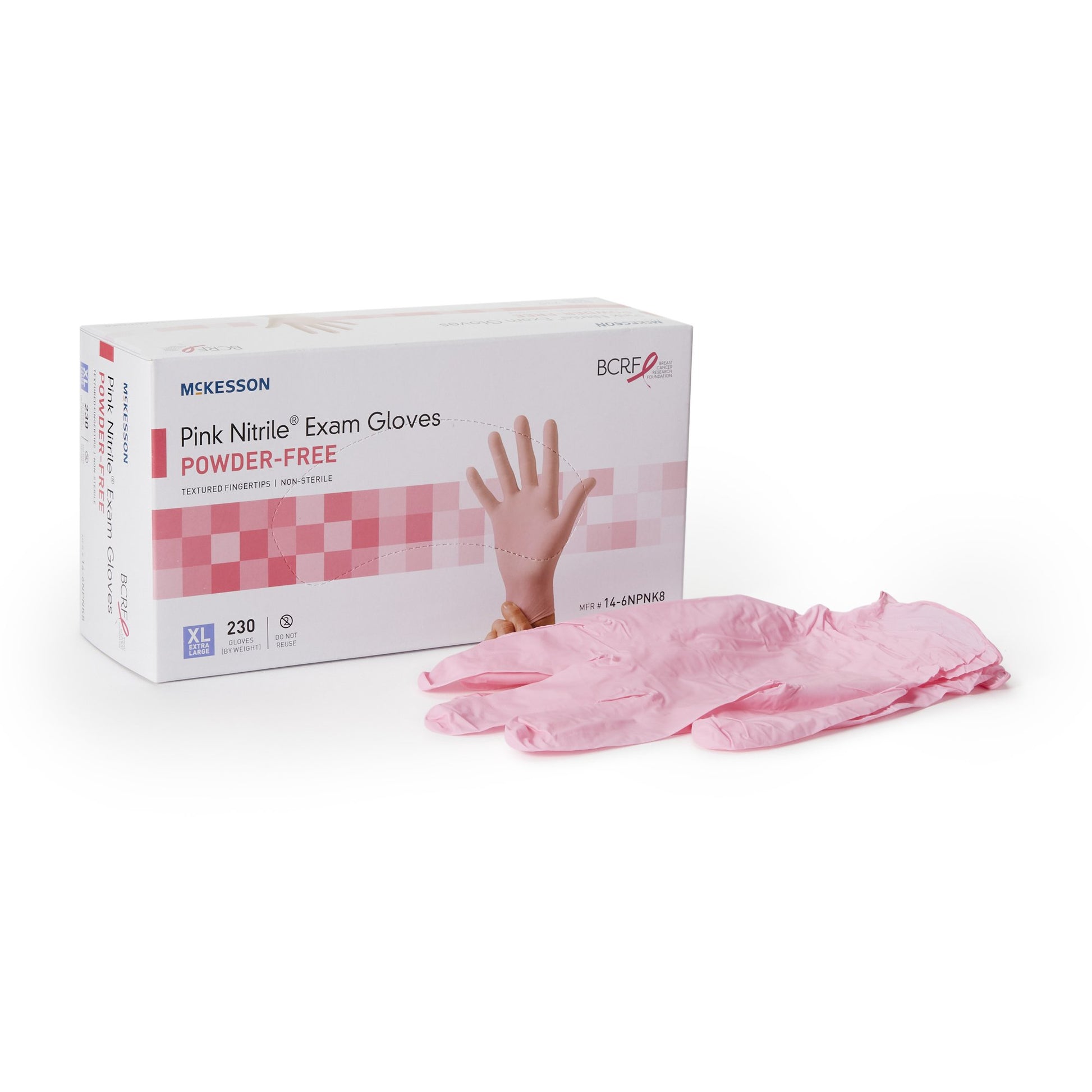 - McKesson Pink Nitrile exam gloves have a standard length beaded cuff to prevent them from rolling down.