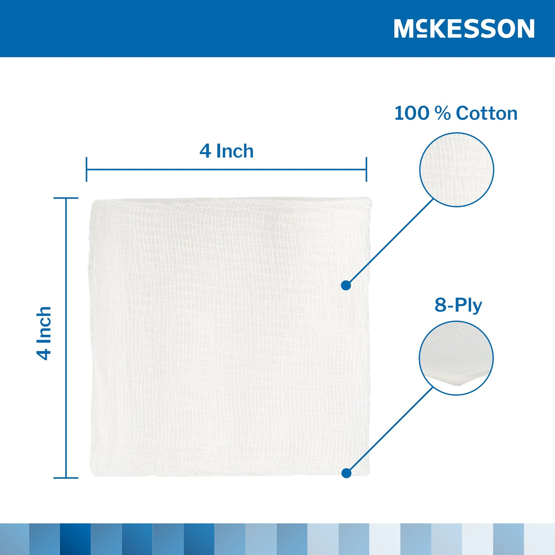 - Gauze sponge offers reduced linting properties.