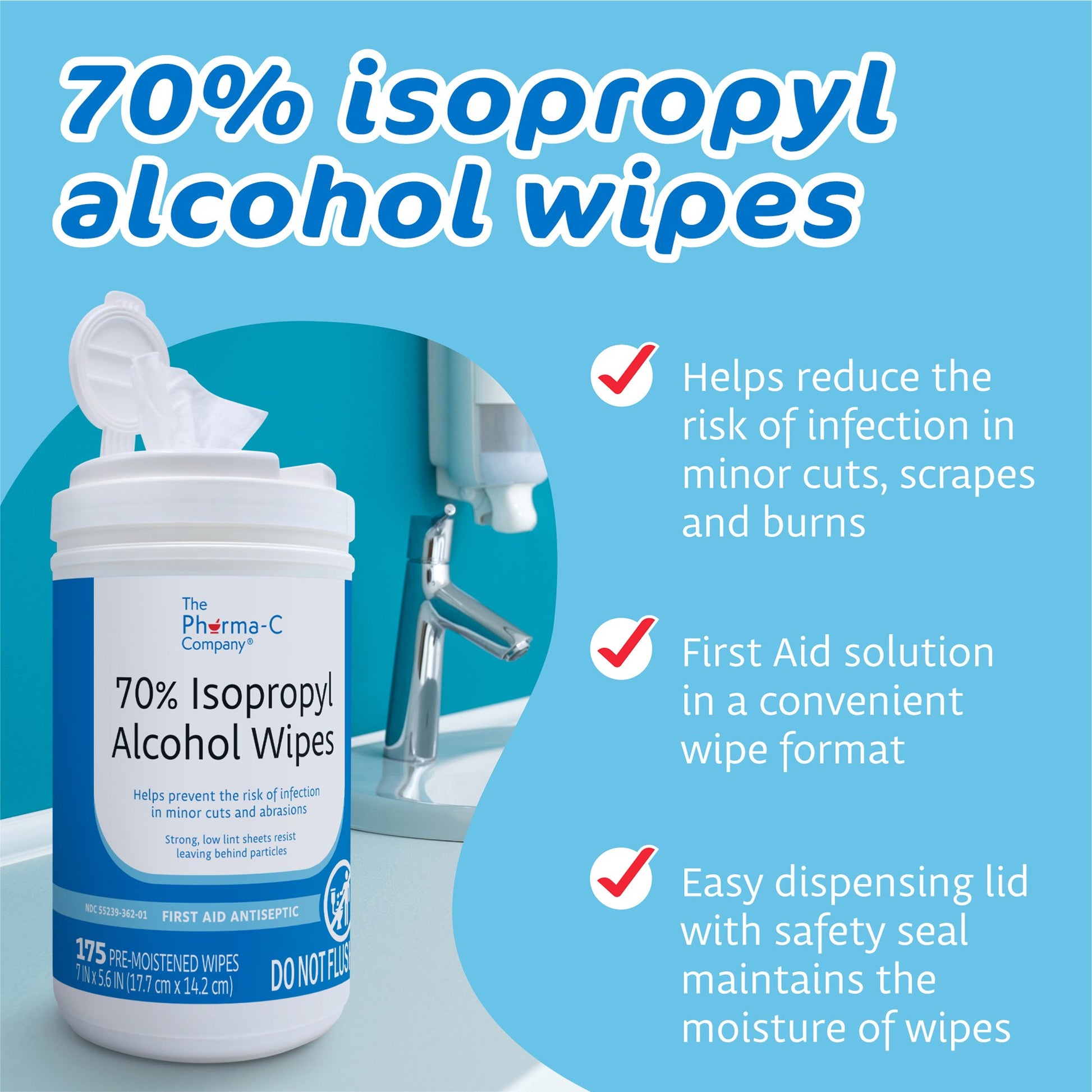 - Canister holds 175 pre-moistened wipes; easy dispensing lid of canister, with safety seal, maintains the moisture of wipes.