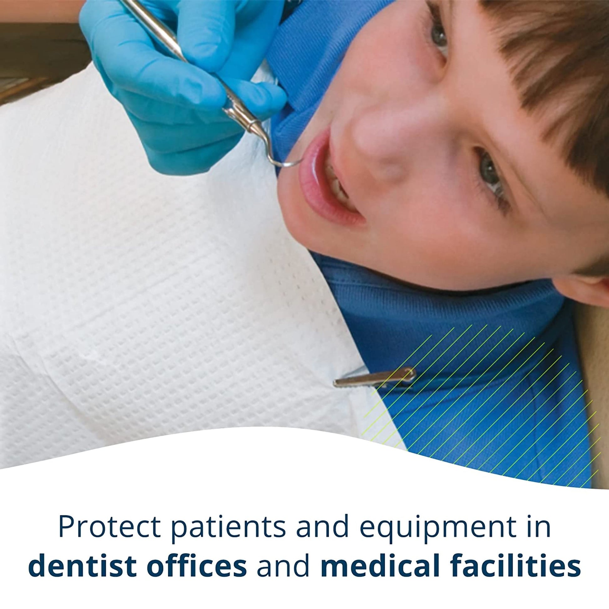 - There are 500 teal dental bibs in a case.