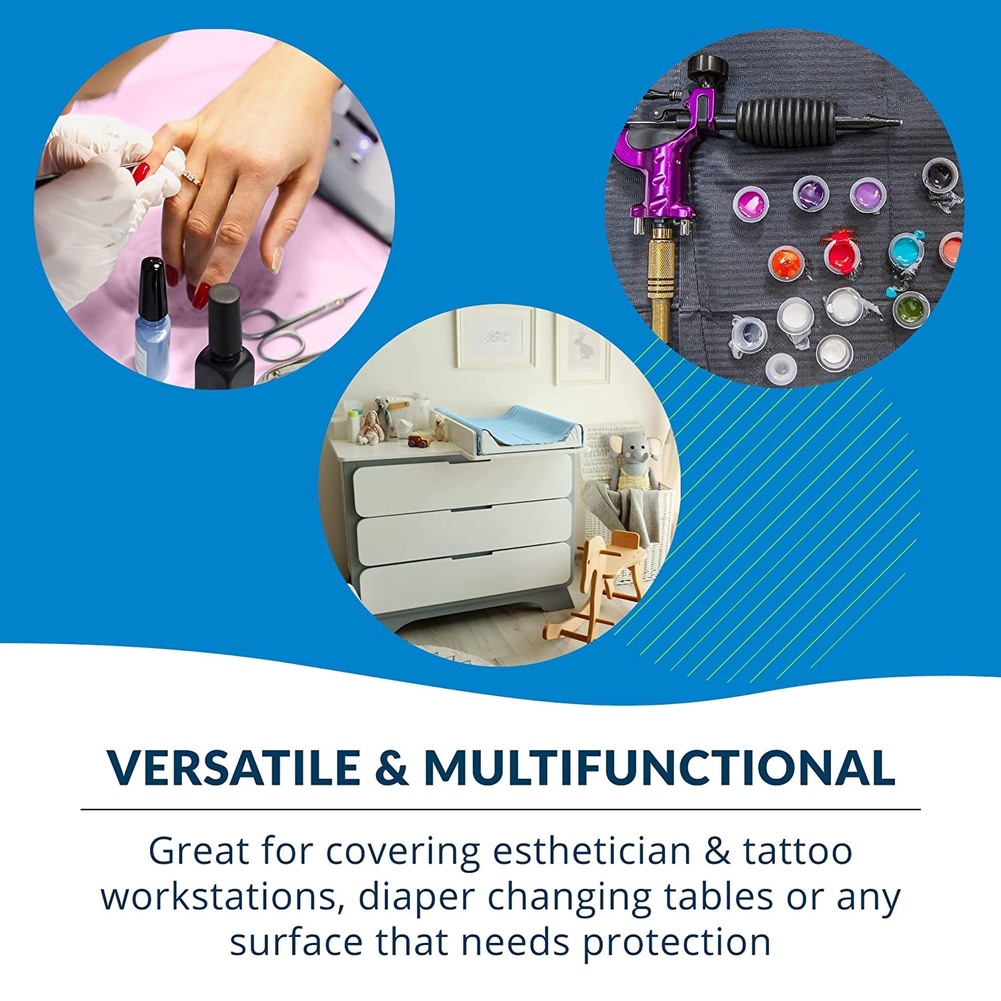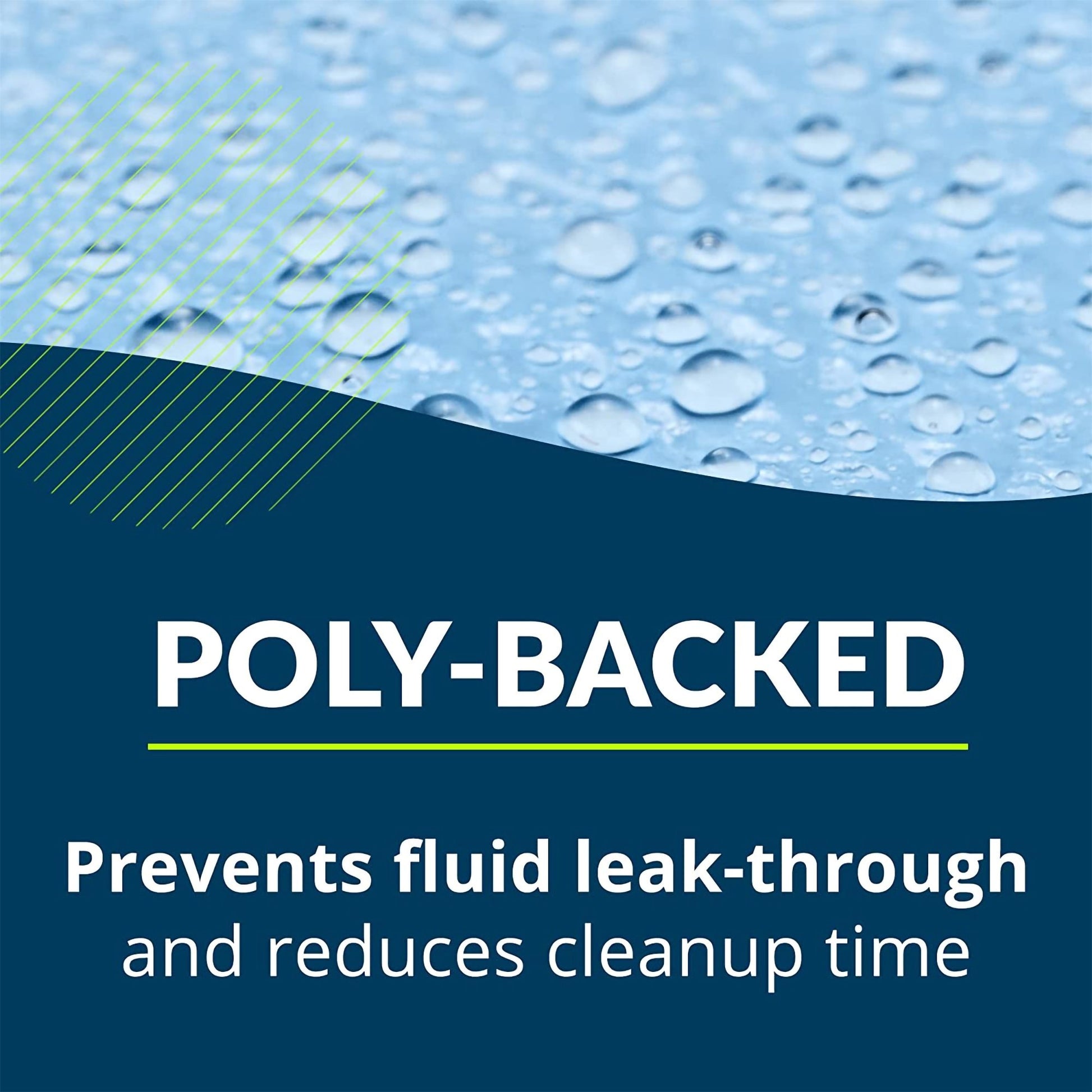 - Polyethylene backing provides a leak-proof, protective barrier.