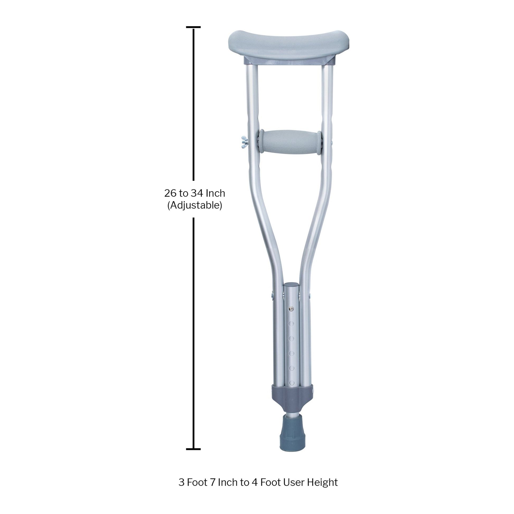 - Height of crutches adjusts from 26 to 34 inches.