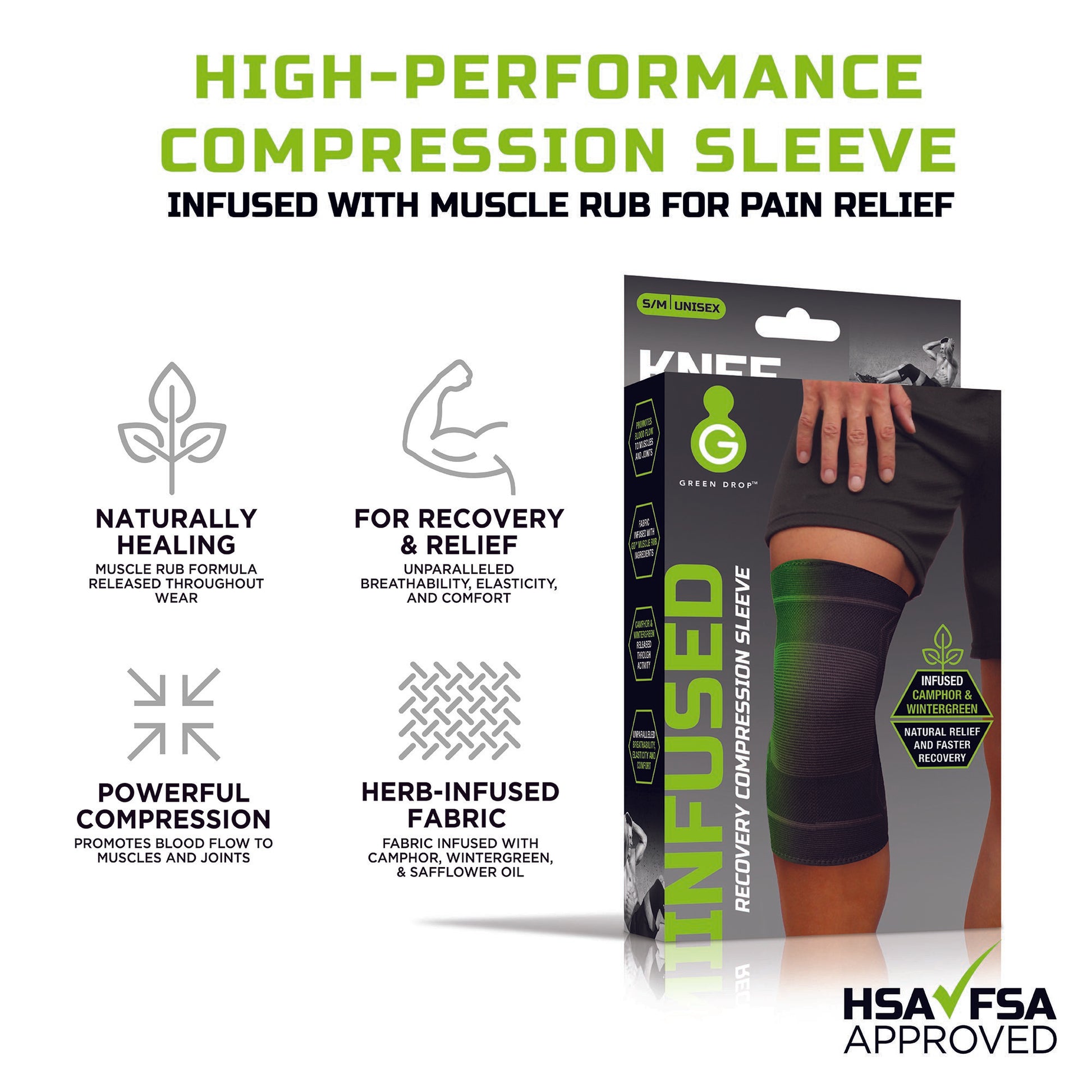 - Compression sleeve supports and aligns joints for more efficient movement while the all-natural muscle rub penetrates and soothes.
