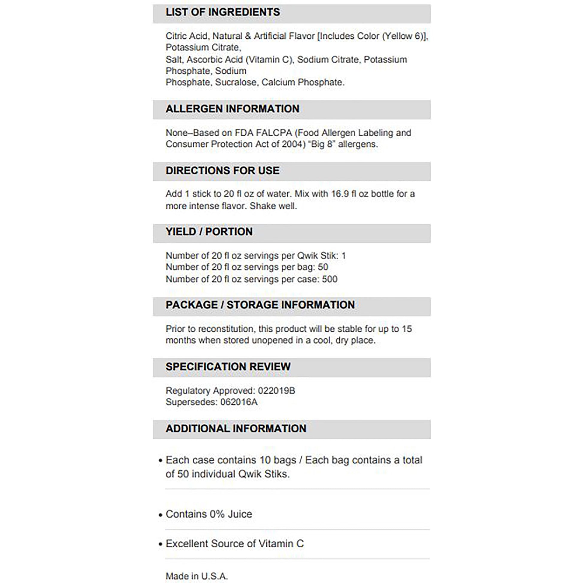 - Each packet yields a 20-ounce drink
