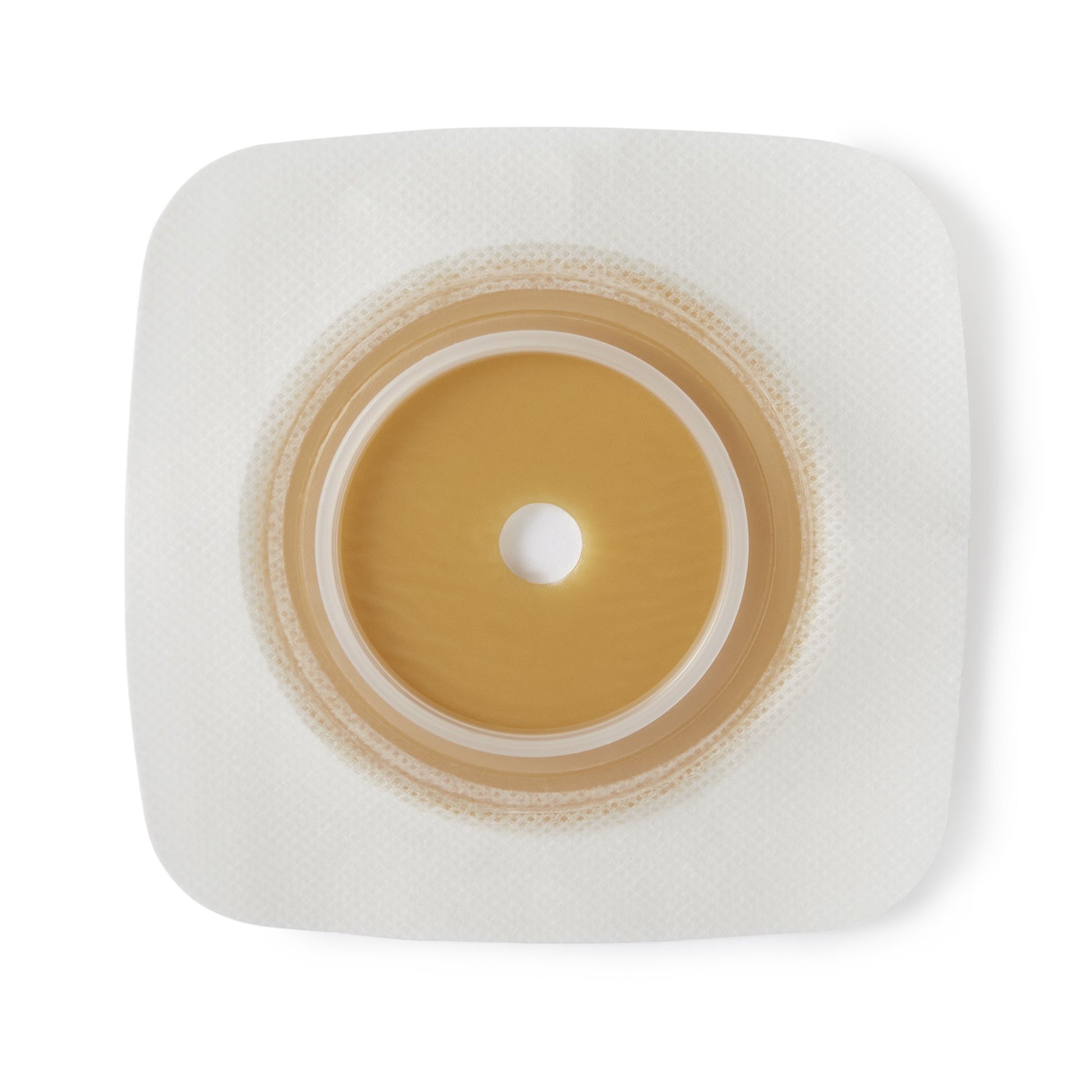 - Plastic coupling ring allows the pouch and skin barrier to snap together for audible security