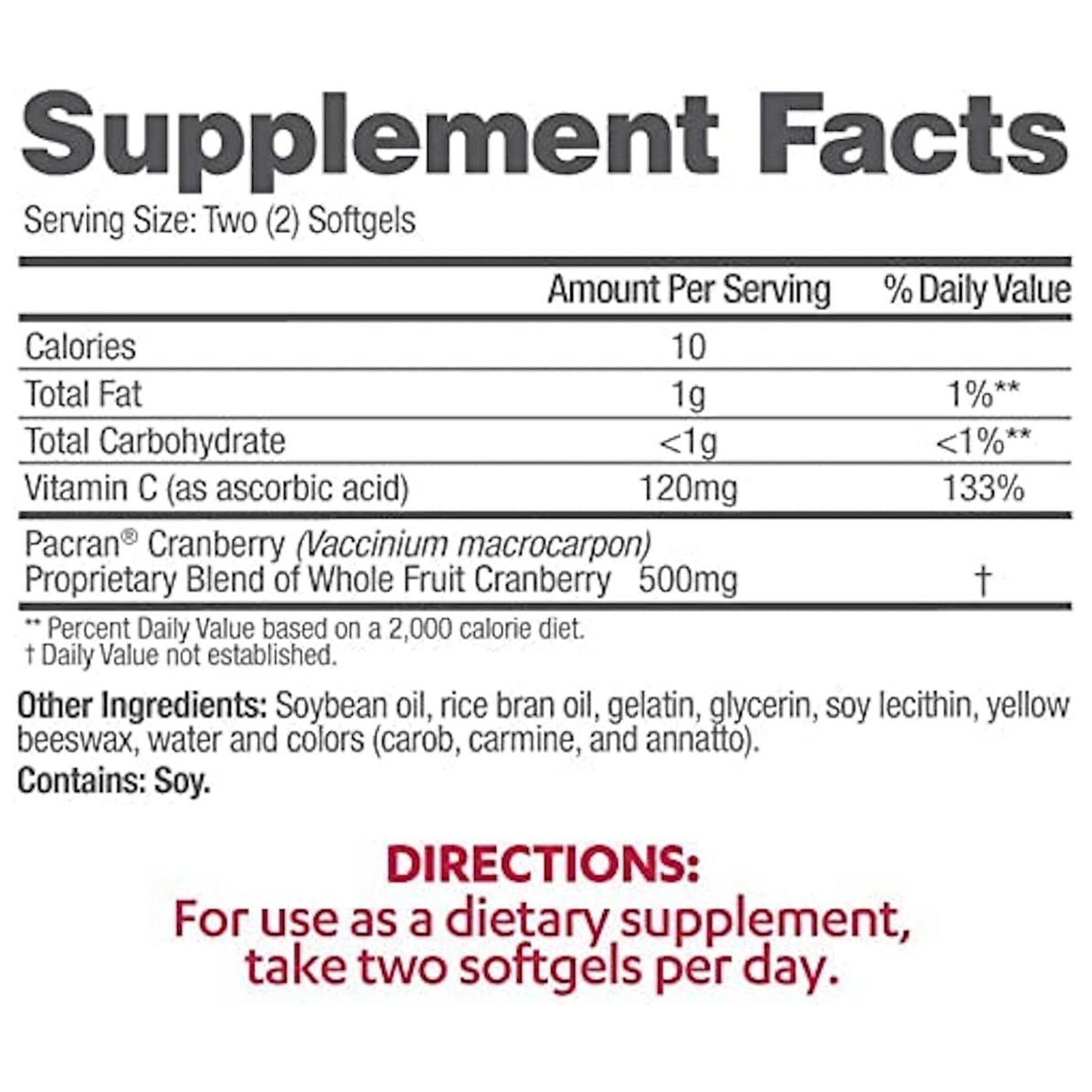- Two softgels have the equivalent vaccinium macrocarpon (cranberry extract) as a glass of cranberry juice