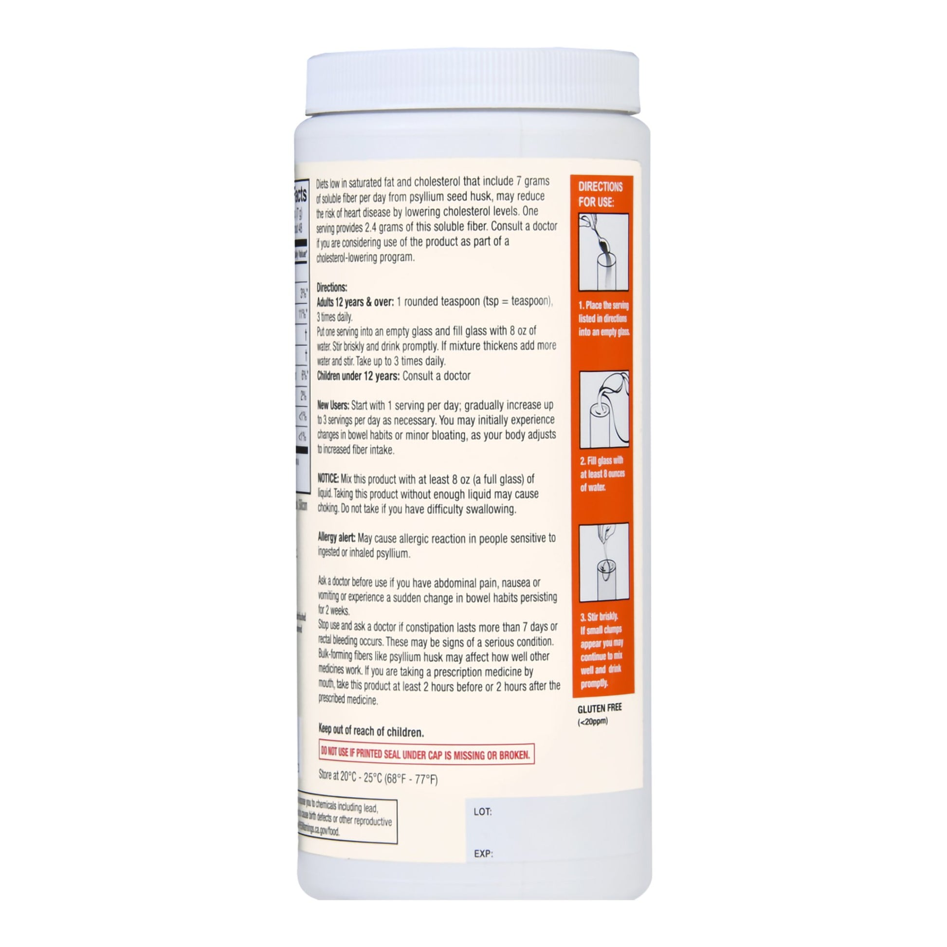 - Canister contains 368 grams of dietary fiber supplement