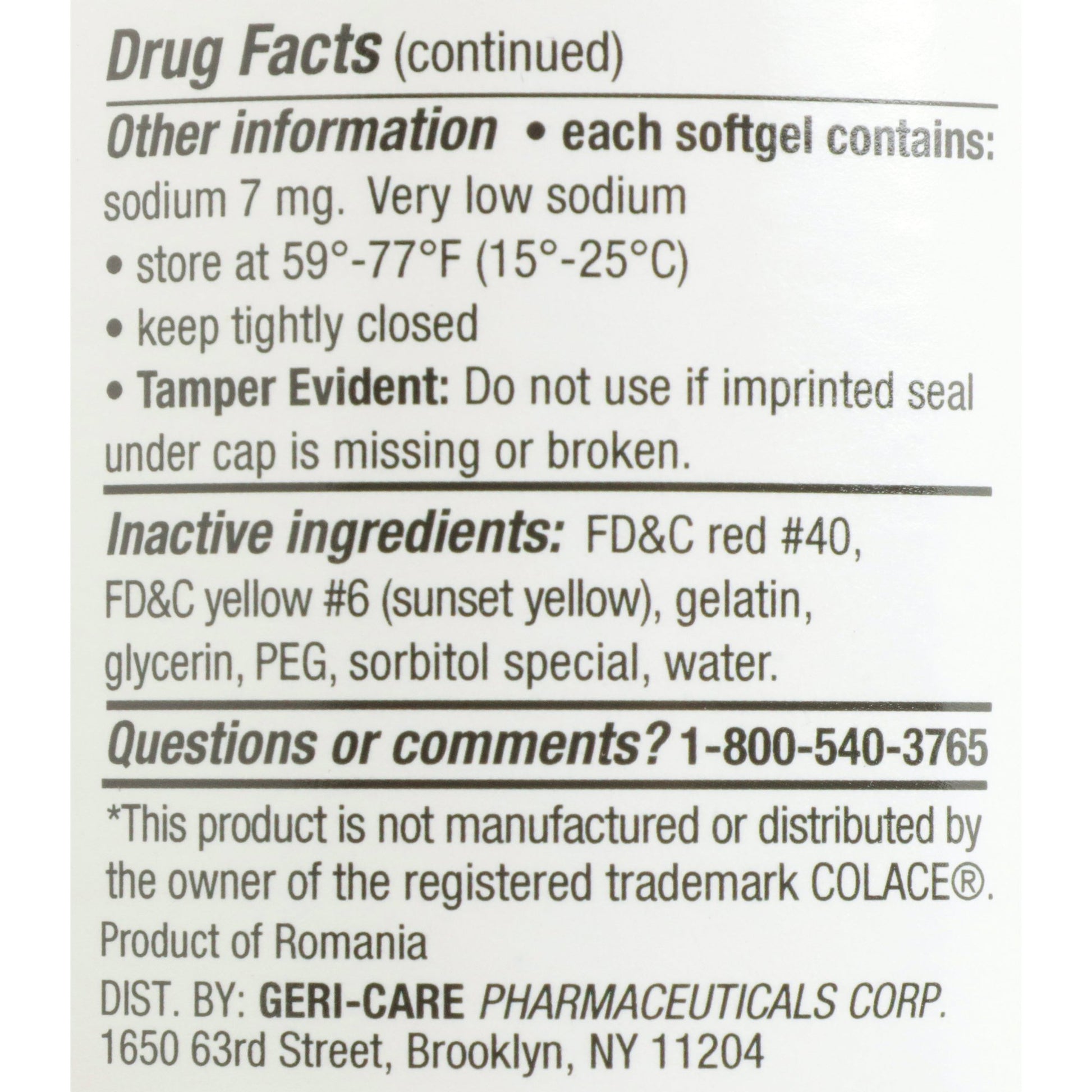 - Geri-Care stool softener softgels relieve occasional constipation or irregularity by helping users pass stool more easily.
