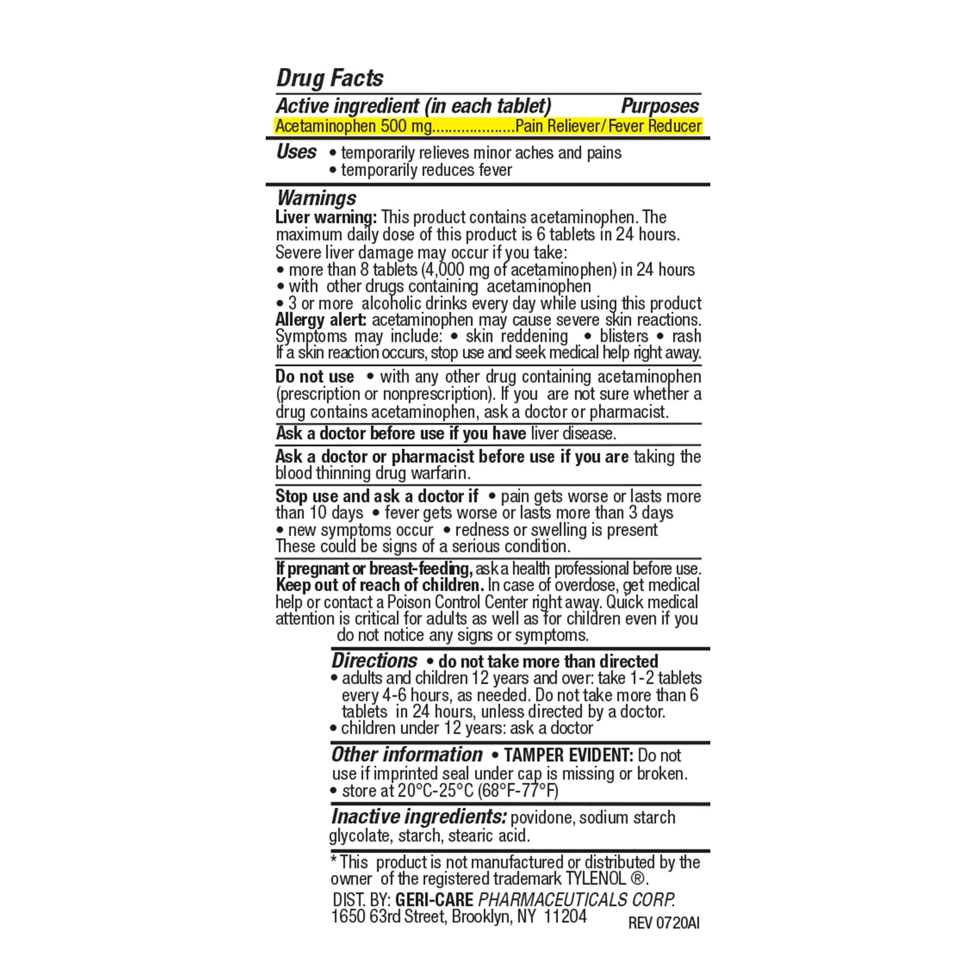 - Compare to active ingredient in Tylenol® Extra Strength – a registered trademark of Kenvue.