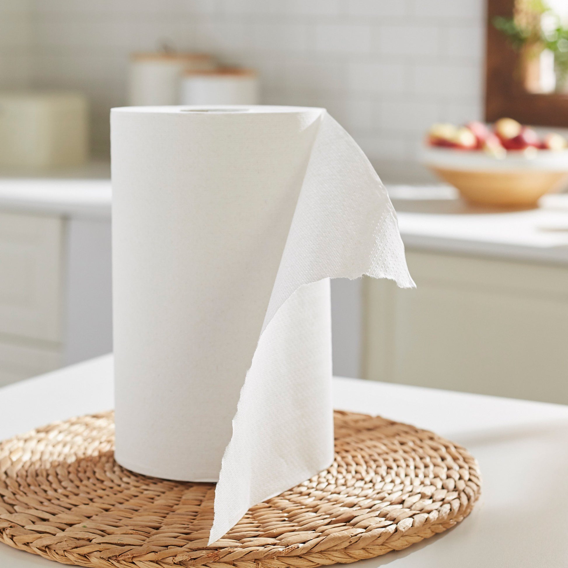 - Embossed one-ply white hard wound roll towels offer softness and absorbency