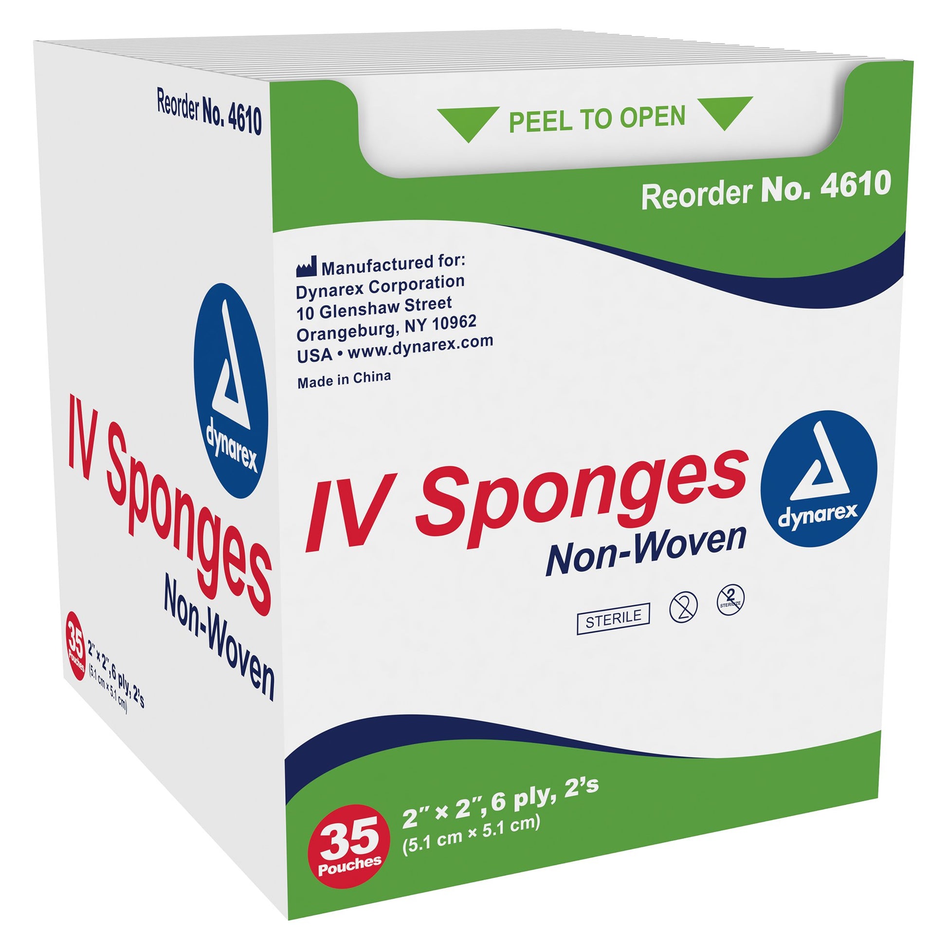 - Six-ply nonwoven IV sponges are 2 x 2 inches.