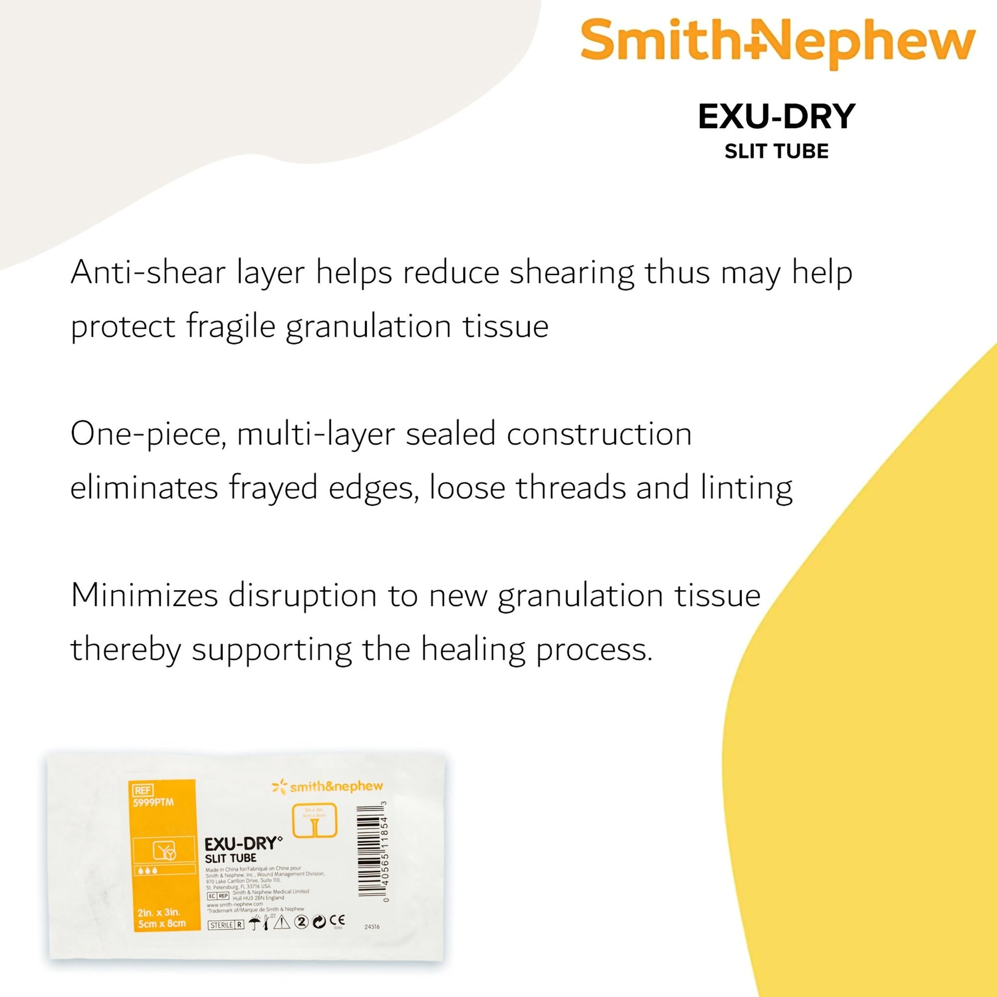 - Highly absorbent, Exu-Dry helps reduce the risk of maceration and irritation to the wound and surrounding tissue: It also wicks away drainage from the wound into the entire dressing, reducing the frequency of dressing changes.