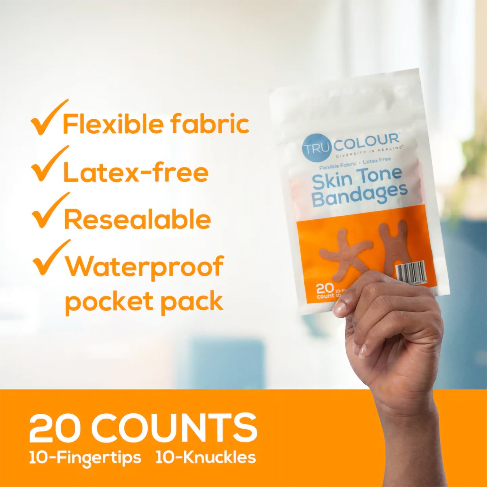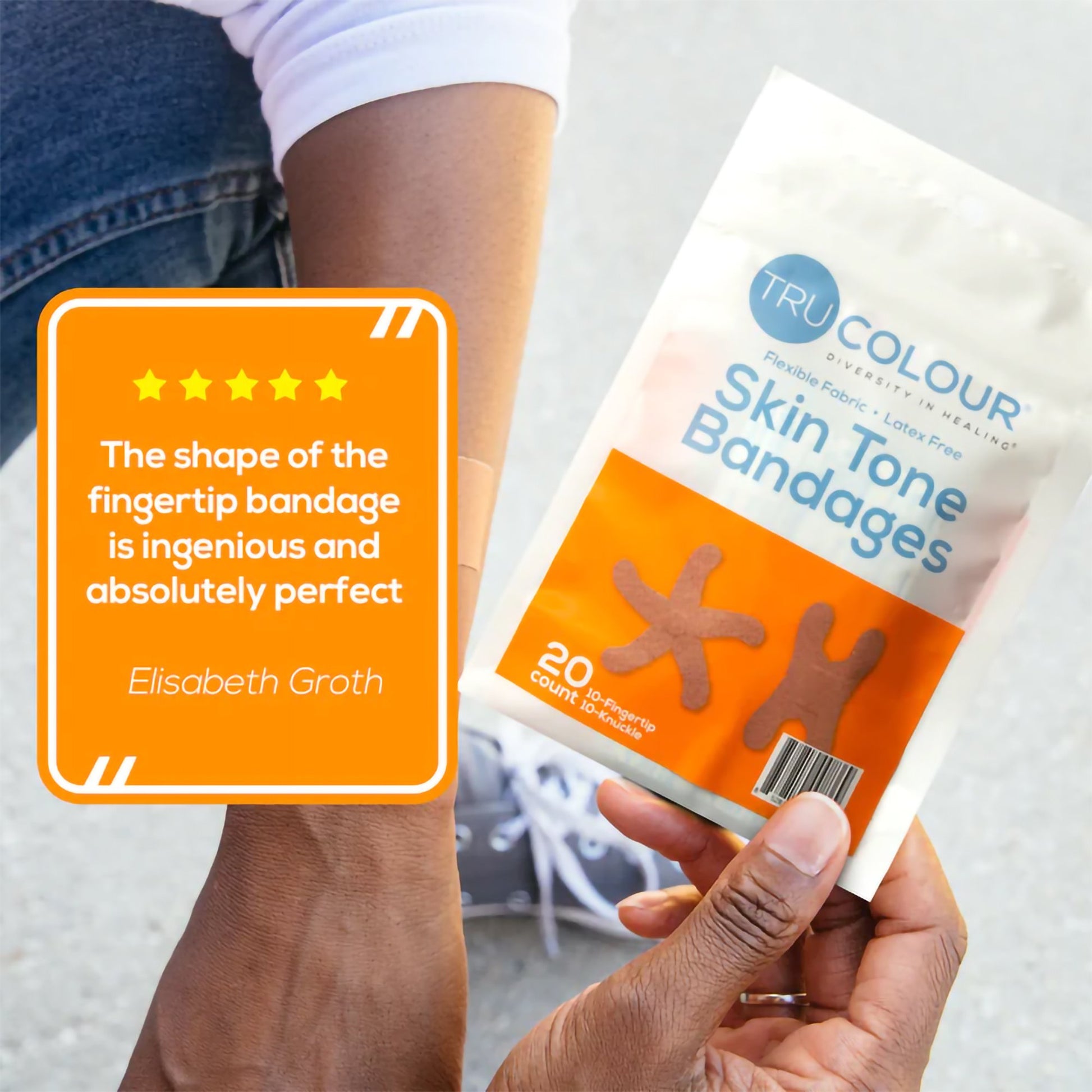 - Each package includes 20 assorted bandages: 10 fingertip bandages; 10 knuckle bandages.