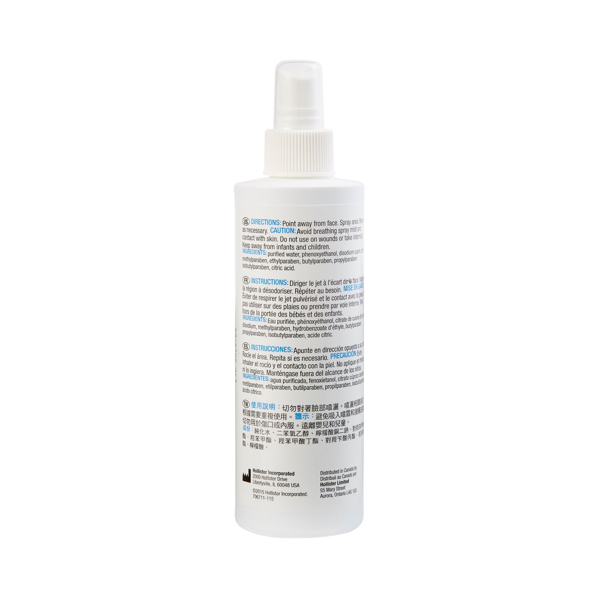 - Hollister M9 odor eliminator spray unscented uses ingredients such as purified water and citric acid to neutralize odor, not cover it up
