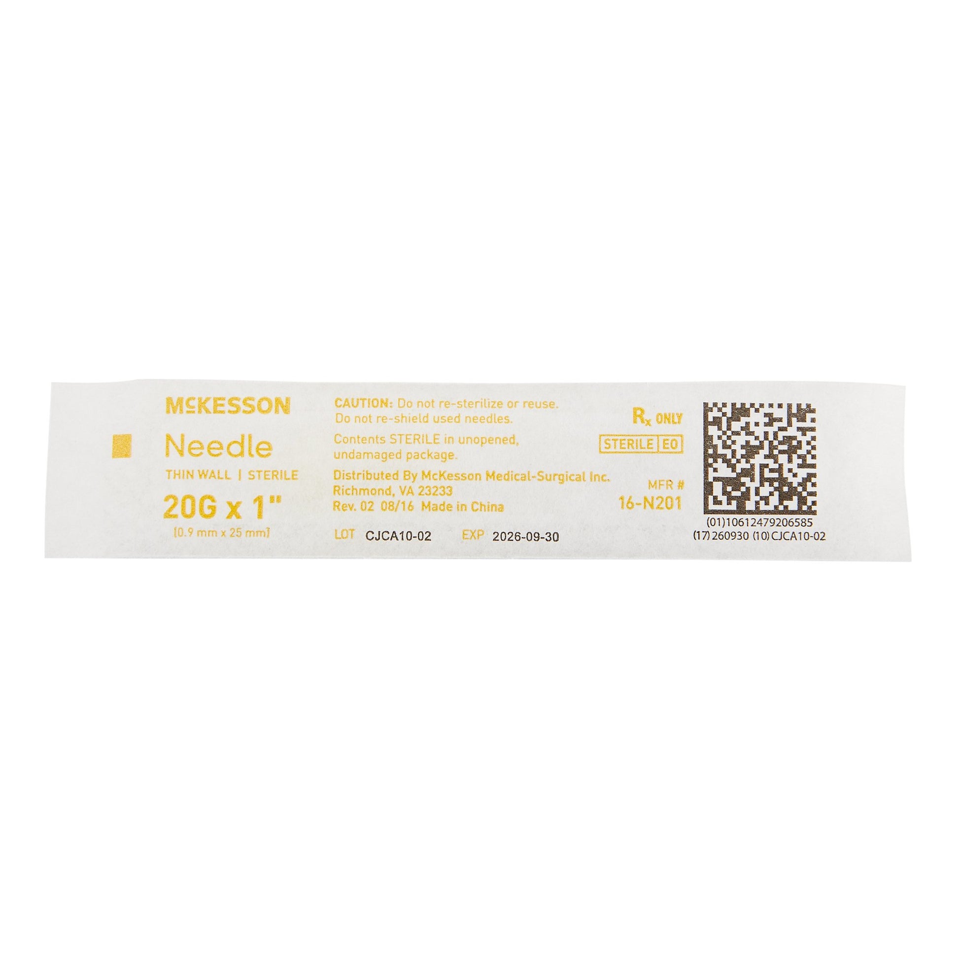 The McKesson Hypodermic Needle (Product Code: 16-N201) is a high-quality medical device designed for accurate and efficient injections. Featuring a 20G x 1" needle, it is ideal for a variety of medical procedures, including medication administration and blood draws. The needle is constructed from durable stainless steel, ensuring sharpness for smooth and controlled injections to minimize patient discomfort. Each needle is sterile and individually packaged to maintain cleanliness and prevent contamination.